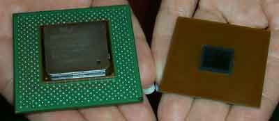 Так как вся работа процессора выполняется на кристалле, здесь рассеивается довольно большое количество тепла. Если во время работы процессора прикоснуться к его упаковке, она не покажется вам слишком горячей, но если бы вы задели ядро процессора - вы бы почувствовали разницу. Такая разница в температуре становится причиной некоторых проблем. Как вы знаете, в зависимости от температуры, тела имеют обыкновение сжиматься и расширяться. Поэтому если ядро работает при температуре 50 градусов, а упаковка нагрета лишь до 27, скорее всего возникнут проблемы - ядро будет расширяться с одной скоростью, а упаковка - с другой. Если не принять это во внимание, что-нибудь может просто-напросто треснуть.