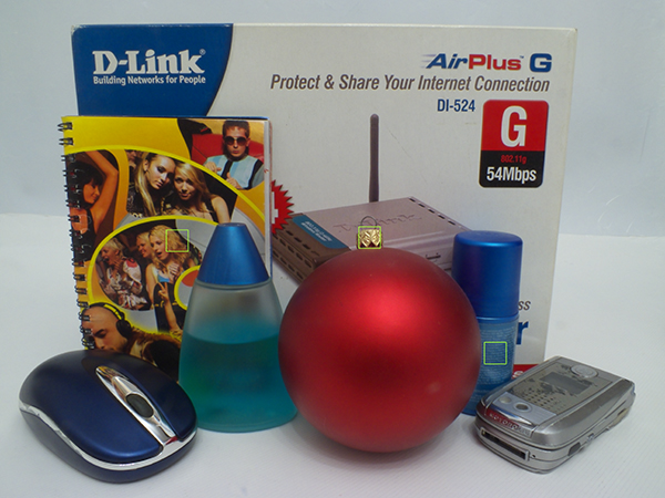 Для оценки шумности использовался следующий метод: фотографировалась группа разноцветных объектов со всеми значениями чувствительности в формате JPEG с минимальным сжатием. Баланс белого был выставлен автоматически. Съёмка тестовой мишени также была проведена при активированном режиме шумоподавления. Кроп-фрагменты создавались в программе Photoshop CS5 с последующим сохранением в формате JPEG с минимальным коэффициентом сжатия. На снимке, приведенном ниже, зелеными квадратами обозначены области кроп-фрагментов.