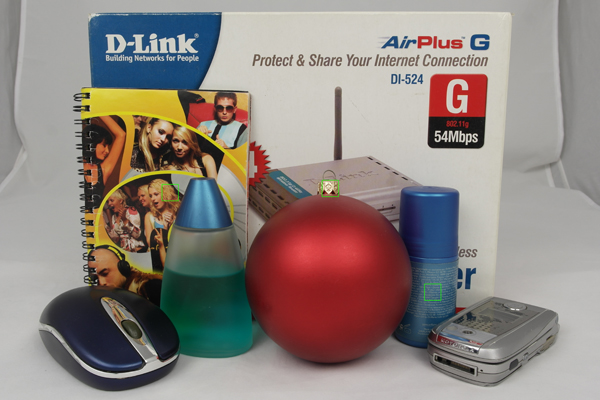 ⇡#ФототестыШумы Для оценки шумности использовался следующий метод: фотографировалась группа разноцветных объектов со всеми значениями чувствительности в формате JPEG с минимальным сжатием, а также в формате RAW с последующим конвертированием комплектным ПО в формат TIFF со стандартными настройками. Баланс белого был выставлен автоматически. Съёмка тестовой мишени также была проведена при активированном режиме шумоподавления. Кроп-фрагменты создавались в программе Photoshop CS5 с последующим сохранением в формате JPEG с минимальным коэффициентом сжатия. На снимке, приведенном ниже, зелеными квадратами обозначены области кроп-фрагментов. Тестовые кадры были отсняты с чувствительностью от 100 до 12800 единиц в ISO-эквиваленте. В качестве RAW-конвертера применялся Samsung RAW Converter 4, который основан на базе SilkyPix Developer Studio 4.0, используемый как основа или в чистом виде не только Samsung, но и другими производителями, такими как Panasonic, Pentax, Fujifilm. Стоит отметить, что SilkyPix Developer Studio в чистом виде уже давно доступен в версии 5.0.