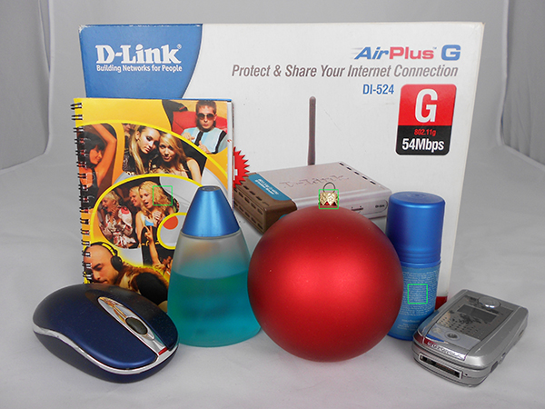 Для оценки шумности использовался следующий метод: фотографировалась группа разноцветных объектов со всеми значениями чувствительности в формате JPEG с минимальным сжатием, баланс белого был выставлен по белому листу. Кроп-фрагменты создавались в программе Photoshop CS5 с последующим сохранением в формате JPEG с минимальным коэффициентом сжатия. На снимке, приведенном ниже, зелеными квадратами обозначены области кроп-фрагментов. Тестовые кадры были отсняты с чувствительностью от 100 до 3200 единиц в ISO-эквиваленте.