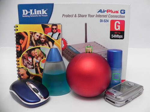 Для оценки шумности использовался следующий метод: фотографировалась группа разноцветных объектов со всеми значениями чувствительности в формате JPEG, баланс белого был выставлен автоматически. Кроп-фрагменты создавались в программе Photoshop CS2, с последующим сохранением в формате JPEG с минимальным коэффициентом сжатия. На снимке, приведенном ниже, зелеными квадратами обозначены области кроп-фрагментов. Тестовые кадры были отсняты с чувствительностью от 160 (минимально допустимое значение) до 3200 единиц. Шумоподавление полностью не отключается, поэтому был выбран режим "авто". В качестве оппонентов были выбраны гиперзумы Olympus SP-800UZ и Sony CyberShot HX1, а также предшественник - Nikon Coolpix P90 . Камеры Olympus и Nikon оборудованы CCD сенсорами с размером 1/2,33 и 1/2,3 дюйма и разрешением 14 и 12,1 Мп соответственно. В камере Sony используется новый сенсор Exmor CMOS размером 1/2,4" разрешением всего 9 Мп, тогда как в тестируемой камере установлен чуть больший сенсор 1/2,3", а максимальное разрешение составляет 10,3 Мп. Стоит отметить, что у камеры Sony минимально допустимая чувствительность, как и у героя материала, довольно высока - 125 единиц в ISO эквиваленте, тогда как у Nikon Coolpix P100 - 160 единиц.