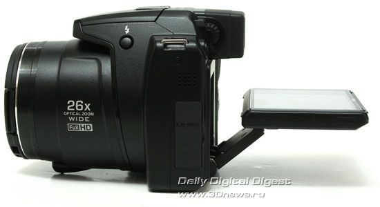 Ну а теперь - о главном. Нет, это не 26-кратный оптический "зум", ведь этот показатель лишь немного лучше, чем у предшественника. Главная особенность - переход с CCD- на CMOS-сенсор. При этом матрица несколько выросла в размере - от 1/2,33'' до 1/2,3'', а максимальное разрешение уменьшилось с 12,1 Мп до 10,3 Мп. Максимальный уровень чувствительности также понижен с 6400 до 3200 единиц в ISO-эквиваленте.