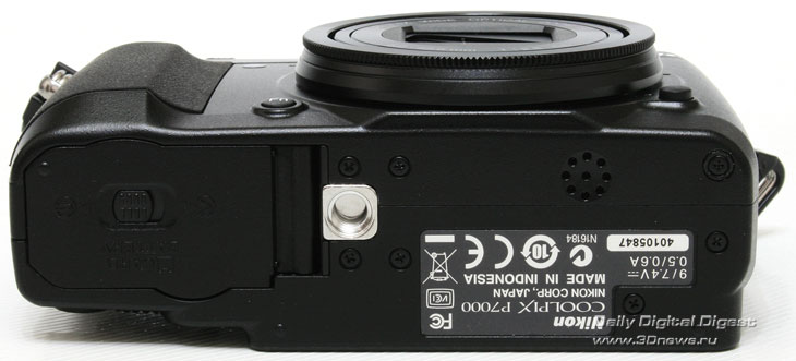 Снизу стандартный набор, состоящий из системного динамика, отсека установки аккумулятора и карты памяти, а также металлического ¼-дюймового разъёма для штатива.