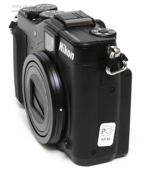 В руке средних размеров камера лежит весьма удобно, а благодаря резиновым накладкам спереди и сзади (под большой палец правой руки), камера не норовит выскочить, несмотря на свой немалый для компакта вес. Корпус Nikon Coolpix P7000 в основном изготовлен из металлических панелей, но даже пластик на тыльной стороне по тактильным ощущениям полностью повторяет поверхность лицевой металлической панели, поэтому поначалу его тоже можно принять за металл. Качество сборки безупречно, а сама камера будто бы монолитна, поэтому при попытках скручивания и сдавливания нисколько не поддаётся и не издаёт ни скрипов, ни тресков.
