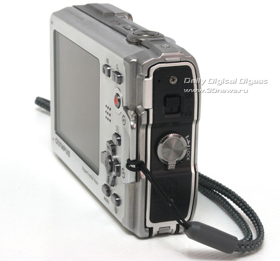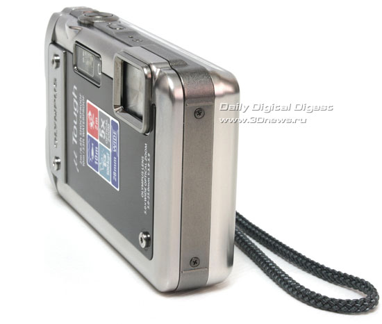 В камере установлен привычный 2,7-дюймовый дисплей, который используется в подавляющем большинстве компактных камер производства Olympus. Данная матрица уже давно хорошо себя зарекомендовала - достаточно большие углы обзора, неплохая цветопередача, яркость дисплея не слишком высока, но, благодаря хорошему антибликовому покрытию, с камерой удобно работать даже при падении на дисплей прямых солнечных лучей. По современным меркам, разрешение дисплея невысоко, но все же оно не меньше, чем у основного конкурента, а именно - 230 тыс. точек. Единственный недостаток дисплея - его защита. Учитывая то, что камера ударостойкая, хотелось бы видеть защиту в виде толстого клееного стекла, но используется довольно тонкий пластик, который при сильном давлении все же можно продавить вплоть до соприкосновения с матрицей.