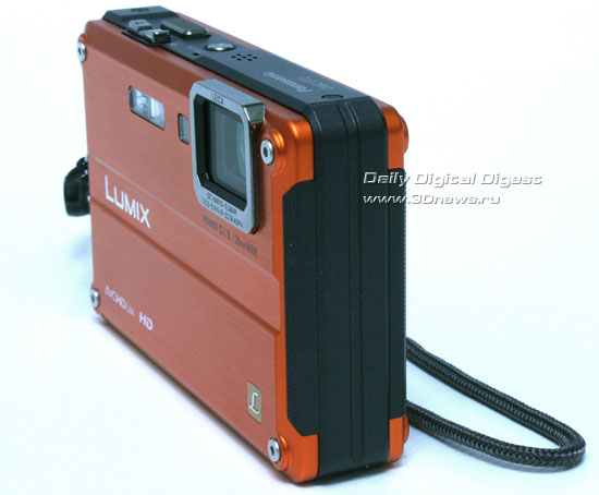 Корпус новинки похож на предшественника - фотоаппарат Panasonic LUMIX DMC-FT1, который побывал у нас на тестировании в прошлом году, но есть отличия в небольших деталях - иной дизайн боковых панелей, появившиеся блокировки замков на дверцах, сменило место дислокации ушко крепежного шнурка.