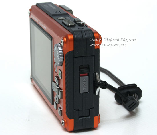 Камера поставляется в двух цветах - классическом серебристом и ярком оранжевом, который и попал к нам на тестирование. С субъективной точки зрения, для отпуска оранжевая камера является наилучшим выбором, ведь камеру с такой "кислотной" окраской потерять весьма сложно что на пляже, что в горах, что в чащах леса. Кроме того, смотрится она веселее, да и маленькие дети с большим вниманием смотрят на яркую коробочку, что облегчает их фотографирование.