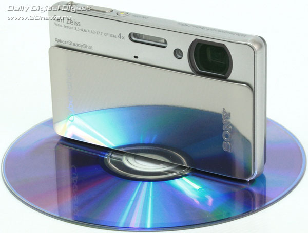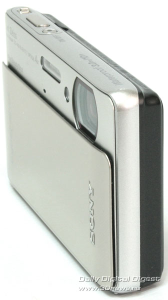 Тестируемая камера не только по характеристикам, но и внешне чрезвычайно схожа с недавно протестированной моделью DSC-TX7. Впрочем, практически все камеры серии T уже на протяжении многих лет похожи друг на друга как близнецы, и в этом нет ничего удивительного, ведь дизайн весьма удачен. Судя по фотографиям, корпус камеры должен был быть матовым, но на деле оказалось, что сдвижная панель с зеркальной поверхностью, что особенно эффектно смотрится при серебристом цвете корпуса, который и попал на тестирование. Также доступны розовый и чёрный вариант расцветки. Зеркальная поверхность мгновенно собирает отпечатки, но царапины, как ни странно, отшлифованной до блеска поверхности не страшны даже при транспортировке без чехла. Корпусные детали с матовой поверхностью, разумеется, от отпечатков не страдают.