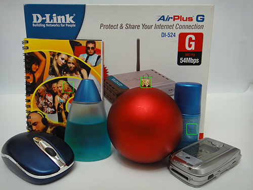 Для оценки шумности использовался следующий метод: фотографировалась группа разноцветных объектов со значениями чувствительности от 125 до 3200. Баланс белого устанавливался по белому листу. Кроп-фрагменты создавались в программе Photoshop CS2, с последующим сохранением в формате JPEG с минимальным коэффициентом сжатия. На снимке, приведённом ниже, зелёными квадратами обозначены области кроп-фрагментов. В качестве оппонентов были выбраны не конкуренты, а лишь камеры с сенсорным экраном и защищённые камеры, ведь прямых конкурентов – защищённых «сенсорников» больше просто нет. Итак, в качестве оппонентов выступили «сенсорники» Canon IXUS 210 и Nikon Coolpix S70, которые оборудованы ПЗС-сенсорами размером 1/2,3 дюйма, а также камера экстремал Panasonic LUMIX DMC-FT2 с ПЗС-сенсором 1/2,33". Максимальное разрешение у Nikon Coolpix S70 12 Мп, а у Canon и Panasonic – 14 Мп, тогда как у героя материала 10,1 Мп, снятых с КМОП-матрицы размером 1/2,4 дюйма.