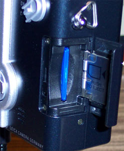 На этом экранчике высвечивается информация о текущих режимах съёмки и камеры, а так же о батарее и SD карточке. На первый взгляд, всё то же самое можно узнать и из показаний большого LCD. Но только на первый. Дело в том, что большой LCD страдает от всех тех проблем, что и любой цветной LCD. А именно, при ярком свете на нём почти ничего не видно. Для решения этой проблемы Leica комплектует камеру специальными шторками, которые крепятся на крепление штатива и призваны прикрывать LCD на ярком свете. Но многим пользователям (и мне в том числе) пользоваться этими шторками показалось неудобным. И в этом случае маленький LCD оказывается как нельзя более кстати, ведь его можно читать и при самом ярком солнце. Кроме этого, он пригодится и при отключении большого LCD (батарея не вечная).