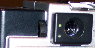 В режиме ручной фокусировки можно настраивать либо по видоискателю, либо по LCD. Видоискатель на Digilux 1 не отличается ничем экстраординарным, и для настройки на резкость в нём предусмотрена нарисованная рамочка. Таких развитых инструментов, к которым привыкли пользователи дорогих зеркальных камер, здесь нет и в помине. Из приятных особенностей видоискателя можно отметить его месторасположение. Находится он прямо над объективом, на одной линии, поэтому искажения (когда в видоискателе видно не то, что снимает объектив) минимальны. Хотя, безусловно, во время макросъёмки лучше ориентироваться по LCD. Кроме этого, нельзя не отметить возможность диоптрической коррекции видоискателя, что порадует пользователей в очках. Диоптрическая коррекция осуществляется колёсиком рядом с видоискателем.