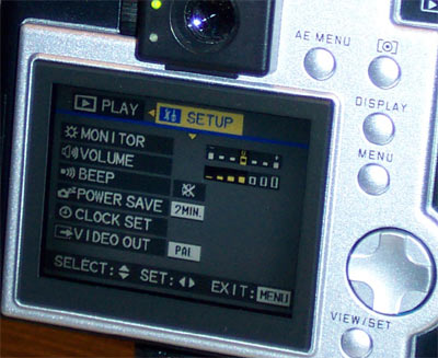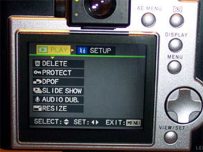Большой LCD делает работу с меню камерой удивительно приятной. Передвигаются по нему с помощью четырёхпозиционной качельки. Меню состоит из двух разделов, в одном настраиваются возможности камеры, в другом параметры съёмки.