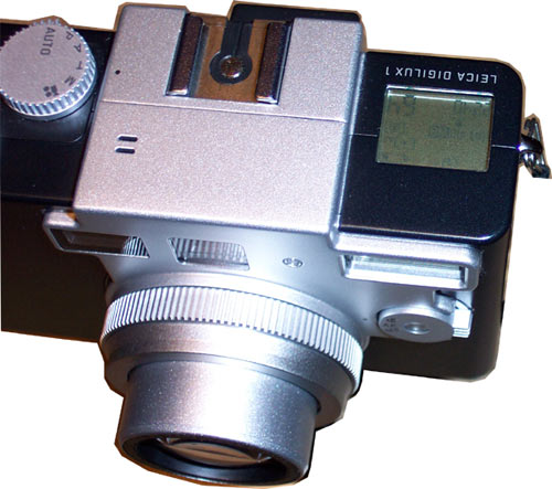Само кольцо исключительно простое по конструкции, с одной стороны резьбы на 49 мм, с другой может быть всё что угодно. Например 52 мм, использовавшиеся в советских фотоаппаратах, том же Zenit, и для которой у старых фотолюбителей можно найти целые кучи приспособлений (например светофильтров). Всё это можно с большим успехом использовать с Digilux 1. Однако, как показала практика, приобрести такую простую вещь почему-то совсем не просто. Да и не дёшево. К счастью, любой более-менее квалифицированный токарь в состоянии сделать такое кольцо за полчаса. Единственное, на что хотелось бы обратить внимание, если вы решитесь на такой шаг (а оно того стоит), то не ошибитесь с длинной, объектив не должен упираться во что-либо когда полностью выдвигается. В этом Leica Digilux 1 очень выгодно отличается от, например, Canon G3, где переходное кольцо для подсоединения внешних аксессуаров крепится на объектив байнетой весьма сложной формы, изготовить которую в "кустарных" условиях вряд ли представляется возможным (хотя, и здесь можно найти выход из положения, обрезок обычного резинового шланга нужного диаметра не плохо зарекомендовал себя у тех владельцев G3, которые не хотят вылаживать лишние деньги за переходное кольцо).