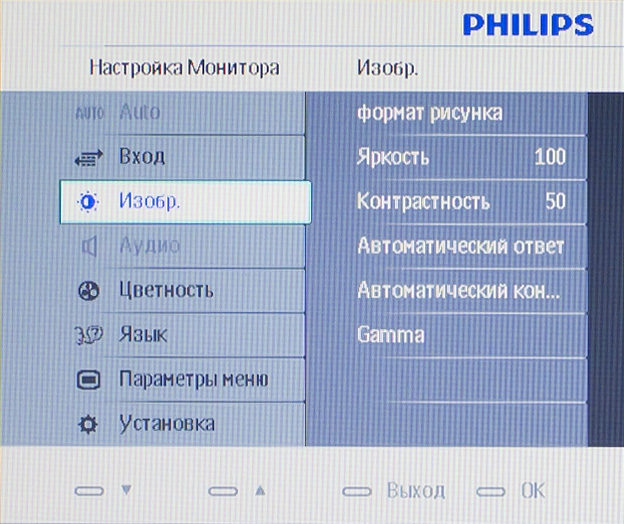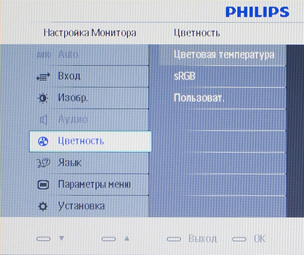 Как и у прочих недорогих мониторов, экранный интерфейс Philips 234CL2SB содержит лишь небольшой набор опций. Есть страничка для быстрой смены предустановленных режимов изображения, и есть расширенное меню, с помощью которого можно отрегулировать картинку вручную. Помимо яркости и контрастности, в пользовательском режиме можно поменять форму гамма-кривой, включить либо выключить автоконтраст и компенсацию времени отклика. Цветопередачу можно откорректировать за счет яркости базовых цветов либо задать цветовую температуру изображения в градусах Кельвина. Есть также опция под названием sRGB — что она делает с цветопередачей, покажет тестирование.