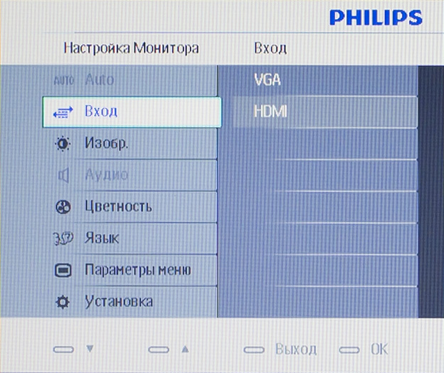 У монитора есть вход HDMI и встроенный ЦАП, позволяющий подать звук на колонки или наушники через разъем «мини-джек», но нет порта DVI.