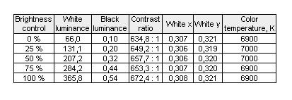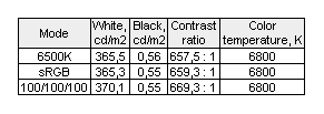 ⇡#Результаты тестированияЯркость, контрастность, равномерность подсветки Для измерения этих параметров изображения мы выключили функцию динамической контрастности, а в настройках цветопередачи вывели на максимум ползунки RGB. Выяснилось, что реальные яркость и контрастность монитора существенно уступают паспортным показателям. Но в абсолютном значении монитор все равно очень яркий. Контрастность также достаточно высокая и могла бы быть еще выше, если бы не изрядная яркость черного поля. Но самое главное — цветовая температура Philips 273E3SB близка к эталонным 6500 К, что редко встречается даже у существенно более дорогих и технически «навороченных» моделей. ![]() Philips 273E3SB — параметры изображения при различных уровнях яркости Тест равномерности подсветки выявил, что яркость изображения убывает по направлению снизу вверх. Разница между самым ярким и самым темным участками изображения существенная. Впрочем, уж лучше градиент, чем пятна. ⇡#Предустановленные режимы изображенияЧто же делают с изображением два предустановленных режима — «Интернет» и «Игры»? Что касается яркости картинки, то первый ее несколько снижает, хотя 340 кд/кв.м — это все равно слишком много для комфортного чтения. ![]() Philips 273E3SB — параметры изображения в различных режимах В обоих режимах цветовая температура довольно постоянна при разных уровнях яркости, причем в режиме «Интернет» линия проходит весьма близко к уровню 6500 К.