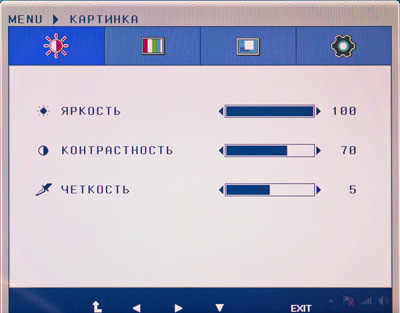 Как обычно, кнопка включения и органы управления монитора расположены на нижней кромке панели справа. Клавиши довольно удобные, поэтому настройка монитора не вызывает трудностей.