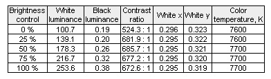 LG Flatron IPS235T — параметры изображения при различных уровнях яркости