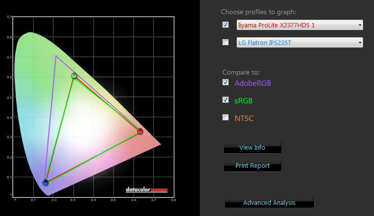 iiyama ProLite X2377HDS-1, после калибровки — цветовой охват