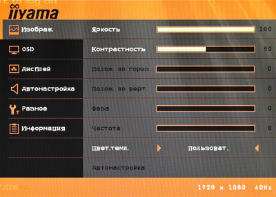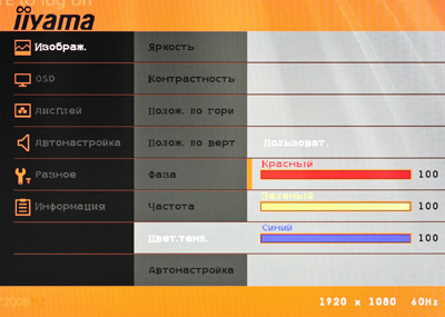 iiyama ProLite X2377HDS-1 — параметры изображения в пользовательском режиме