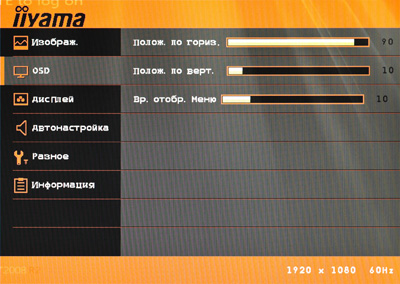 Пункт OSD позволяет настроить положение меню на экране, а также время его отображения.