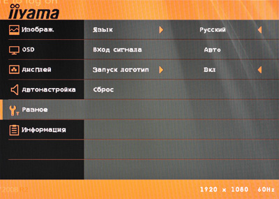 Другие страницы позволяют настроить интерфейс меню, задать вход для видеосигнала, а также получить сервисную информацию о мониторе.