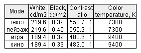 | Контрастность | 523,4:1 | 493,9:1 | |