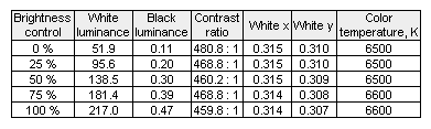 iiyama ProLite X2377HDS-1 — параметры изображения при различных уровнях яркости