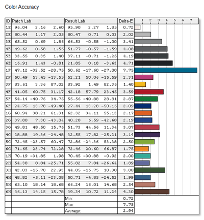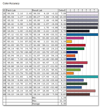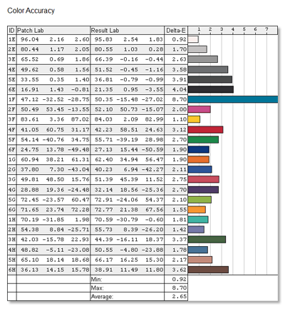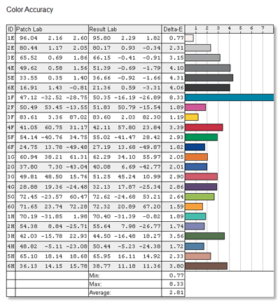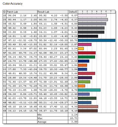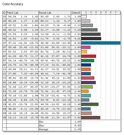 iiyama ProLite X2775HDS-1, после калибровки — точность передачи отдельных оттенков, ΔE