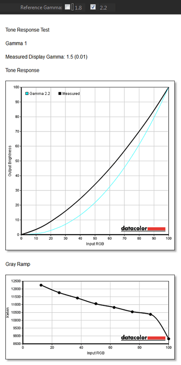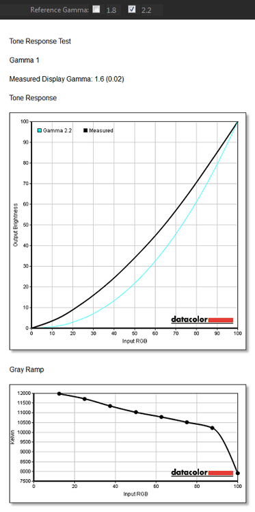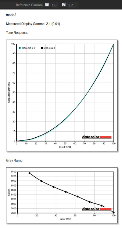 Как мы уже упоминали выше, в мониторе представлено несколько вариантов показателей гамма-кривой, поэтому для проведения дальнейших измерений было необходимо выяснить, какая из предустановок лучше всего подходит для оптимального отображения картинки. В итоге был выбран режим Mode2, как наиболее точно соответствующий референсному графику. Его мы и будем использовать в дальнейшей работе.
