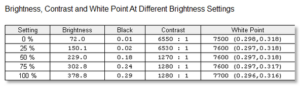 iiyama ProLite X2775HDS-1 – параметры изображения при различных уровнях яркости
