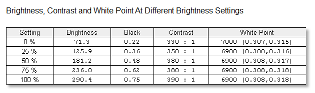 Samsung S27B970D — параметры изображения при различных уровнях яркости