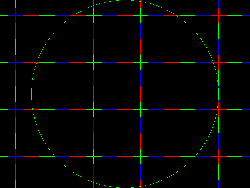 Тест на геометрию - по-прежнему сетка с двумя вариантами величины ячейки, но если раньше было возможно менять шаг сетки и ее цвет произвольно, то теперь можно лишь поочередно размер и поочередно цвет. Причем из цветов возможны только белый и зеленый. После просмотра всех образцов происходит выход в меню, хотите вы того или нет. Очень неудобно, так как например я привык просматривать их несколько раз подряд... Правая мышиная кнопка осуществляет возврат к предыдущей тестовой картинке, т.е. логика управления изменена, это касается всех тестов. После долгого пользования первой версией очень непривычно.