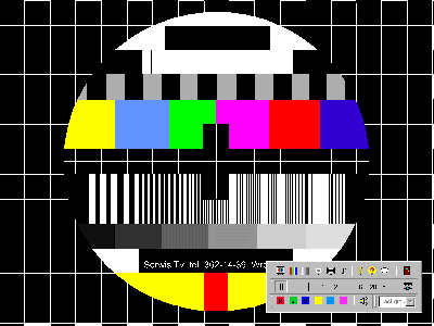 Как и многие из таких программ приветствует нас таблицей напоминающей телевизионную. Меню выполнено в виде инструментальной панели, которая по умолчанию присутствует всегда на верху, но может быть свернута в кнопку, или спрятана вовсе. При отсутствии панели на экране доступ к функциям осуществляется через меню вызываемое правой кнопкой мыши. Панель можно перемещать по экрану, если вам захотелось заглянуть "под нее". Вариант когда панель доступна постоянно удобен возможностью очень быстрого перехода от одного теста к другому, но удобство пользования в программе тестирования мониторов занимает далеко не первое место. Что и как мы можем протестировать ею куда важнее.