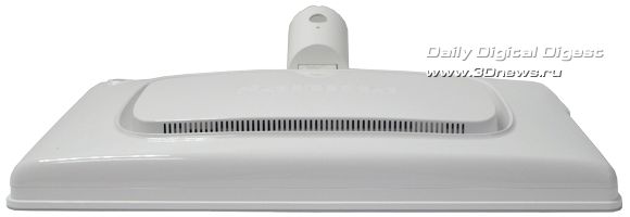 Тыльная сторона дисплея, аналогично ножке и подставке, выполнена из глянцевого белого пластика. У этой модели не предусмотрено посадочное место VESA для настенного монтажа дисплея, зато слева внизу присутствует замок Кенсингтона. Большинство интерфейсных разъёмов традиционно расположено в нижней трети корпуса: слева - разъём для подключения силового кабеля, справа - цифровой вход DVI, аналоговый вход D-Sub, порт USB-host. Ещё один USB-порт расположен в правом нижнем углу корпуса.