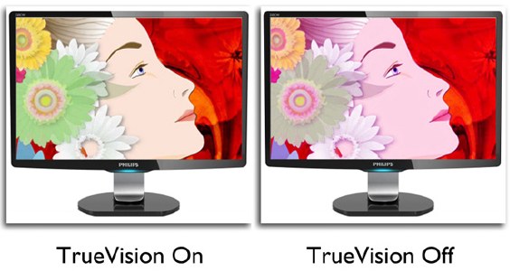 Технология TrueVision, защищённая патентом Philips, отвечает за прецизионную настройку цвета и других ключевых параметров монитора для достижения максимального качества изображения. Кроме того, TrueVision гарантирует, что каждый монитор (а не только контрольные выборки) пройдет систему контроля в четыре раза более сложную, нежели необходимую при стандартном тестировании с Microsoft Vista. И в этом ключе у мониторов Philips, оснащенных технологией TrueVision, есть действительно существенные преимущества перед многими конкурентами.