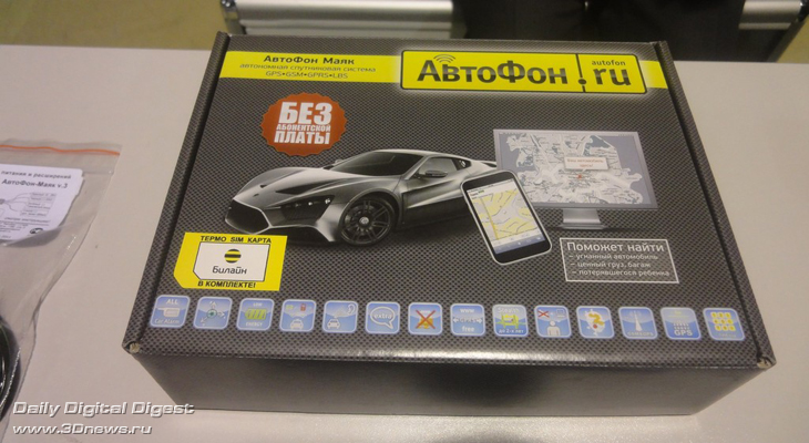 У «АвтоФона» две новинки. Одна — очень дешёвый GSM/GPS-маяк, сделанный на новой сверхэкономичной (с точки зрения энергопотребления) платформе и чипсете SiRF IV. На встроенном комплекте элементов питания маяк работает до трёх лет, «просыпаясь» раз в сутки. В этой модели добавили возможность пересылать SMS на русском языке, что удобнее, но несколько менее экономично (сообщения на кириллице и латинице тарифицируются по-разному), ввели уведомление о подборе пароля, о смене номера владельца и сквозную нумерацию SMS. Но убрали встроенный микрофон, возможность внешних подключений и GPRS. Получилось «народное» устройство, ценой чуть более 3 тысяч рублей.