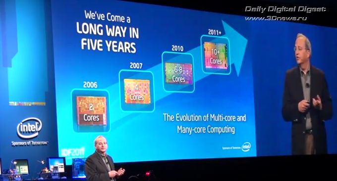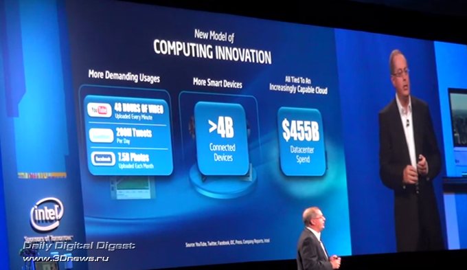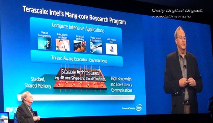 Ключевая презентация третьего дня IDF 2011 была полностью посвящена животрепещущей проблеме растущей потребности в быстрых вычислениях и новым технологиям, которые Intel собирается применять в сфере экстремально масштабных вычислений.