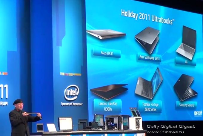 Теме ультрабуков была посвящена значительная часть вступительного доклада первого дня Форума, озвученного президентом и главным исполнительным директором Intel Полом Отеллини (Paul Otellini). Новый, переработанный дизайн процессоров, новые горизонты энергоэффективности, оптимизированный дизайн и плотное взаимодействие с Microsoft в плане оптимизации работы операционной системы Windows 8 на ультрабуках…