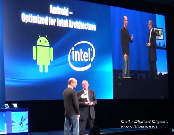 Грядут давно обещанные смартфоны на базе процессоров Intel и операционной системы Android. Анонс стратегического партнёрства с Google, сделанный в первый день Форума Полом Отеллини и Энди Рубином (Andy Rubin), старшим вице-президентом мобильного бизнеса Google, совершенно точно и неоднозначно определил на ближайшее будущее мощную, достаточно агрессивную политику компании Intel на совершенно новом для неё рынке.