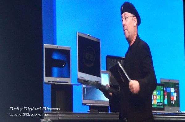 Пожалуй, лучшим ответом на этот вопрос стало выступление Мули Идена (Mooly Eden), вице-президента и генерального директора Intel PC Client Group. В рамках демонстрации на ключевом докладе второго дня Форума Мули Иден взял со стенда обычный ноутбук, раскрыл его и… выудил из него компактный, плоский, лёгкий ноутбук.
