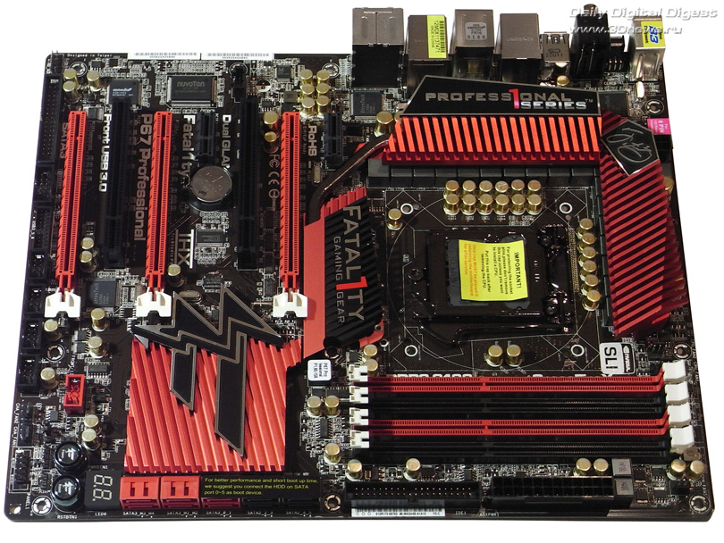 Во-вторых, обратим ваше внимание на плату ASRock Fatal1ty P67 Professional, которая изготовлена не менее качественно, но позволяет пользователю несколько сэкономить.