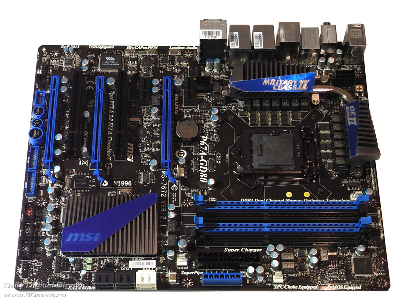 Третья по счету топовая плата называется MSI P67A-GD80 и является воплощением того, как видят инженеры MSI лучшую плату на чипсете Intel P67.