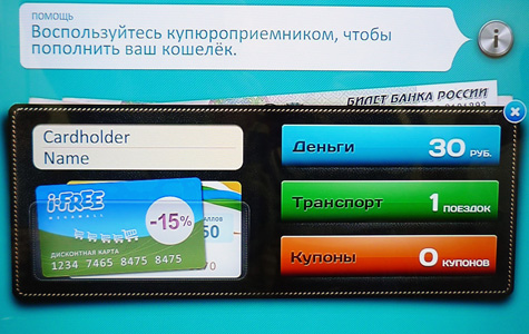 А вот опытный образец информационного киоска. С его помощью можно пополнить счёт, купить поездки, просмотреть детальную информацию о карте и так далее. Впрочем, это всего лишь демонстрационный стенд. Чтобы все эти технологии стали частью нашей повседневной жизни, придётся решить очень и очень много вопросов. Возьмём, к примеру, упомянутую выше возможность пополнения счёта с помощью кофейного аппарата. Чтобы с того же NFC-носителя произвести оплату в магазине, нужна договорённость между магазином и вендинговой компанией. А чтобы это работало повсеместно, необходима единая система для всех игроков розничной торговли и других сфер бизнеса.