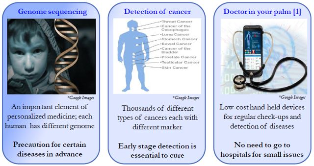 В настоящее время новому сверхчувствительному биосенсору предрекают две ключевые сферы применения. Первая – это персональная медицина, тот самый "личный доктор" в виде браслета на запястье, способный не только определять, но и хранить информацию о белках и ДНК пациента. Такое устройство позволит добиться более точной и правильной диагностики, а также вовремя подскажет, когда и по какому поводу обращаться к специалисту в поликлинике. Кстати, это приложение для гаджетов будет действительно полезным и, уверен, широко востребованным во всём мире.