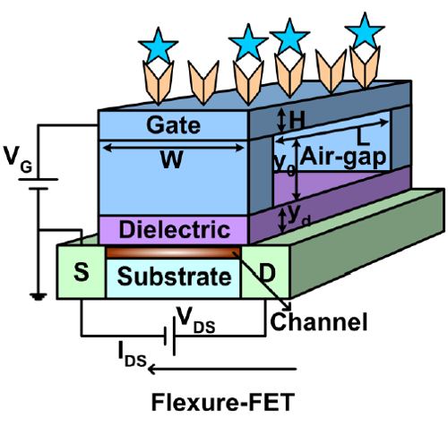 Гибкий сверхчувствительный биосенсор нового типа на полевых транзисторах (Flexure sensitive Field Effect Transistor, или просто Flexure-FET), описание которого размещено на сайте актов Национальной академии наук США (Proceedings of the National Academy of Sciences), разработан в стенах Университета Пердью (Purdue University) на кафедре проектирования компьютеров и электрических машин. По словам главы проекта, профессора Мухаммада Алама (Muhammad A. Alam), особенность проекта заключается в сочетании двух биосенсоров механического и электрического типа. Каждый из этих сенсоров имеет ограниченную и достаточно посредственную чувствительность, в то время как сочетание позволяет добиться огромного (в сотни раз) прироста чувствительности при одновременном появлении новых уникальных свойств.