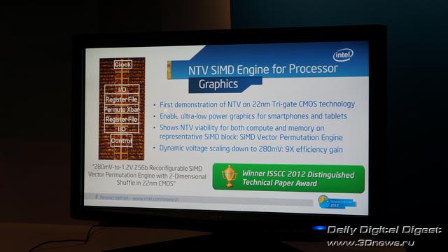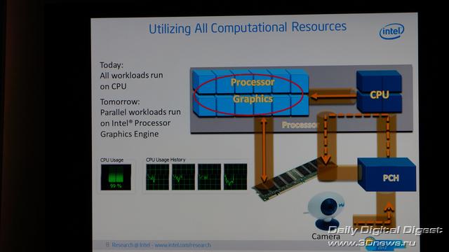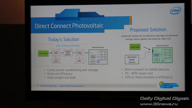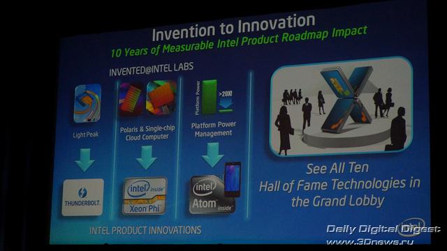 Образование будущего было основной, но далеко не единственной темой докладов Research@Intel 2012. Разница в том, что в остальных выступлениях были затронуты более узкоспециализированные вопросы, главным образом касающиеся развития технологий Intel. Поскольку данный материал представляет собой репортаж, а не техническую статью, ограничусь лишь тезисным изложением этих докладов, иначе переход к самому интересному – экспонатам выставки — неоправданно затянется.