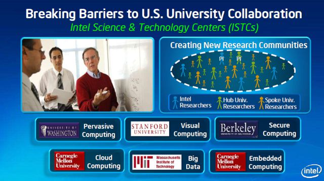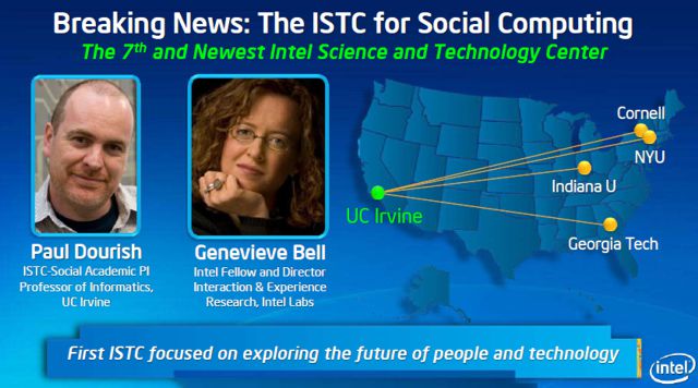 Седьмой центр ISTC базируется в Калифорнийском университете (University of California), что в Ирвине, и тесно взаимодействует с исследовательскими группами в Университете Корнелла (Cornell), Технологическом институте Джорджии (Georgia Tech), Университете Индианы (Indiana University) и Университете Нью-Йорка (NYU). На развитие центра выделено $15 млн в рамках 5-летней $100 млн программы Intel по финансированию ISTC.