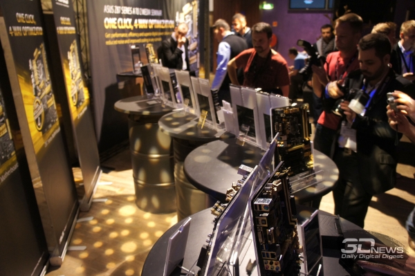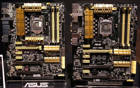 Релиз платформы Intel Haswell не за горами. Строго говоря, новые чипсеты и процессоры давно готовы, да и производители материнских плат, кулеров и прочих аксессуаров уже набивают склады готовой продукции. Кто-то не утерпел и тихонько рассказал о своих будущих продуктах, а кто-то строго хранит обет молчания, лишь изредка и очень дозированно выдавая информацию о новинках для поддержания интереса потенциальных покупателей. Компания ASUS относится как раз ко второй категории. Именно поэтому в сегодняшнем материале представлена только часть сведений о новых материнских платах, анонс которых состоится на выставке Computex 2013. Так что подробных технических характеристик не ждите, а вот про новые фишки и обновление уже имеющихся технологий мы обязательно расскажем. Итак, поехали! ![]() ⇡# Серия ROGА начнём мы с топовой серии материнских плат ASUS ROG (Republic of Gamers). Сразу о главном — к текущим линейкам Extreme, Formula и Gene добавилась ещё одна, которая скромно названа Hero. На презентации была также показана первая ATX-плата из этой линейки под названием ASUS Maximus VI Hero. По характеристикам и возможностям Hero ближе к Formula, но при этом несколько дешевле. Да, платы Hero всё так же имеют боевой красно-чёрный окрас, в них применяются высококачественные электрические компоненты, но ради снижения цены часть фишек, характерных для Extreme и Formula, в них убрана. ASUS Maximus VI Hero По крайней мере останутся аудиоподсистема SupremeFX, гигабитный сетевой адаптер на контроллере Intel и шейпер трафика GameFirst II. Своё решение о выпуске новой линейки разработчики объясняют тем, что геймеры, так сказать, средней руки скорее купят дорогой процессор и видеокарту, нежели дорогую материнку. А линейка Hero как раз предлагает оптимальное соотношение между ценой и возможностями для разгона. Производитель обещает, что эти матплаты будут стоить в районе 220–250 долларов, то есть не дороже самых популярных среди геймеров моделей процессоров Intel. Модуль mPCI-E Combo II Ещё одно обновление коснулось модуля mPCI-E, устанавливаемого в специальный слот в верхней части некоторых плат ASUS. Новый модуль mPCI-E Combo II будет доступен как минимум для двух плат — Maximus VI Extreme и Gene. Он включает в себя разъём mPCI-E под двухдиапазонный адаптер Wi-Fi 802.11 a/b/g/n/ac с модулем Bluetooth 4.0 и слот M.2 (NGFF) для установки сверхкомпактных SSD-накопителей размером 22x42 мм. Первые диски такого формата уже поступили в продажу. Беспроводной модуль вкупе с парой внешних антенн будет поставляться в комплекте с некоторыми платами, а вот SSD в любом случае придётся докупать отдельно. Впрочем, в слоты модуля mPCI-E Combo II можно установить и другие компоненты с подходящим интерфейсом. ASUS Maximus VI Gene Обновлению подверглась и система управления питанием. На презентации, как обычно, рассказывали про качество, надёжность, долговечность, энергоэффективность и готовность к экстремальным нагрузкам японских компонентов подсистемы питания CPU и RAM. Для оверклокеров это, конечно, важно, но не менее важно иметь ещё и удобный инструмент для разгона. Что же, у ASUS он есть. Это новая панель управления разгоном OC Panel. ![]() Она поставляется в комплекте, например, с платой ASUS Maximus VI Extreme. С её помощью можно быстро изменить частоту шины, множитель и некоторые другие параметры системы, а заодно отслеживать её текущее состояние. Также в комплекте идёт специальный бокс, устанавливаемый в пятидюймовый отсек корпуса. В него можно 