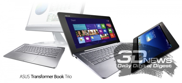 Уникальность Transformer Book Trio в том, что он поставляется с двумя предустановленными операционными системами — Windows 8 и Android. Процессоров тоже два — Intel Core i7 установлен в док-станции с клавиатурой (там же присутствует и 750-Гбайт жесткий диск), за планшетную часть отвечает Intel Atom с частотой 2 ГГц. Разрешение 11,6-дюймового дисплея составляет 1920х1080 точек, в “планшетной части” также установлен флеш-накопитель емкостью 64 Гбайт. Что интересно, “половинки” устройства можно использовать одновременно для разных задач — например, подключив док-станцию к внешнему монитору, готовить презентацию в PowerPoint, а на планшете в это время ребенок может играть в Angry Birds. Идея, безусловно, очень интересная, осталось проверить, насколько гладко все это будет работать в реальности.